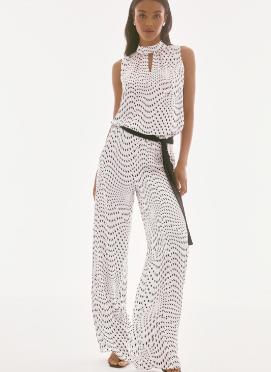 Signature | Satin Dot Print Belted Wide Leg Pants (251747)