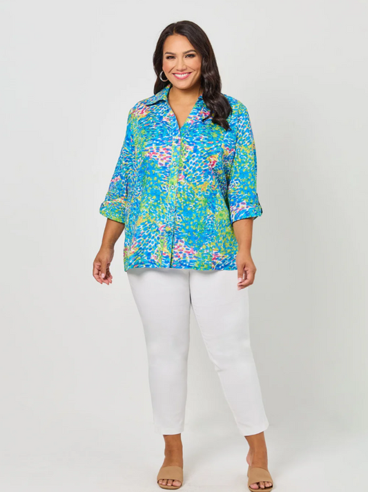 V-Insert Button Thru Print Cotton Shirt (641044)