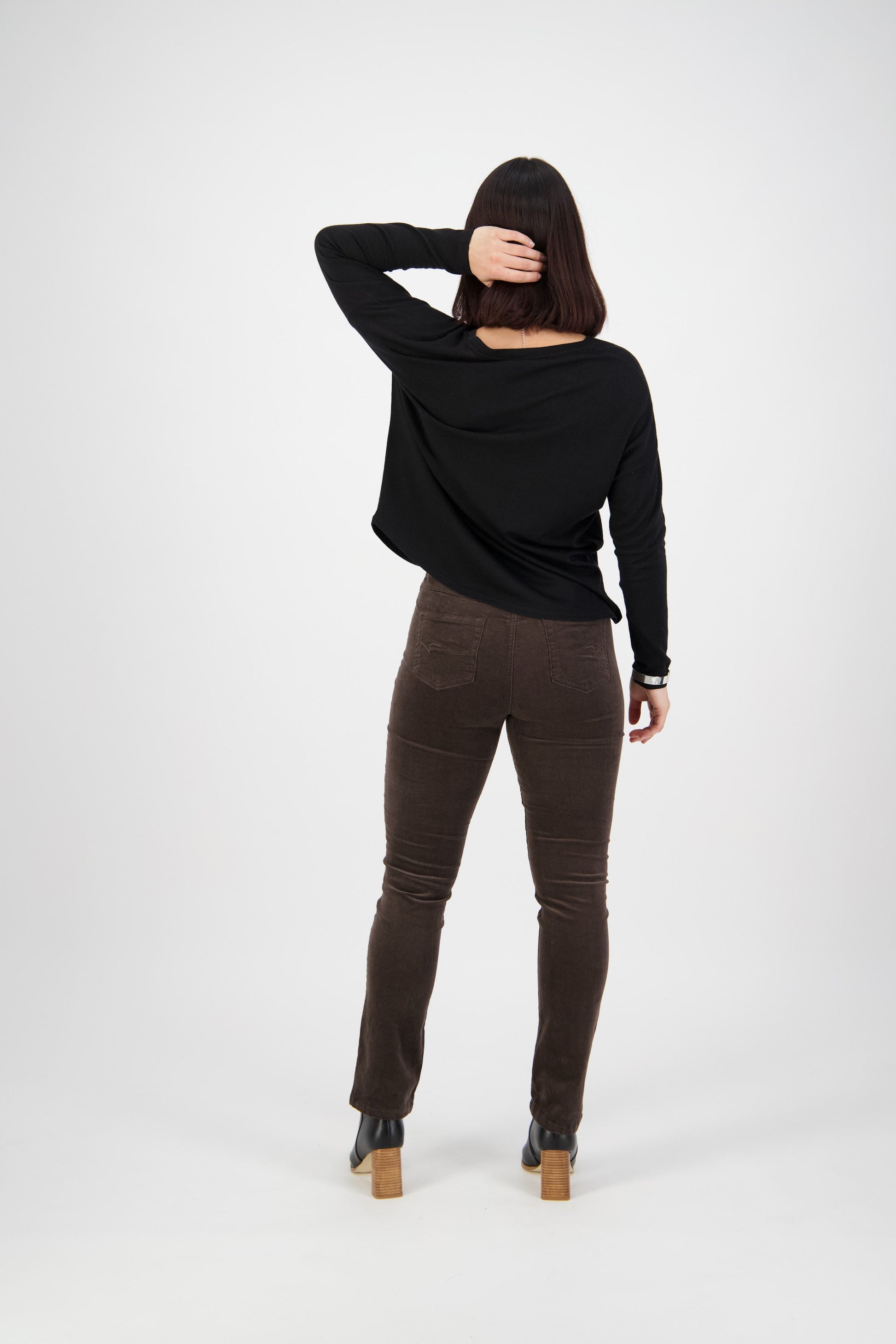 • Two back patch pockets with 'V' stitching detail